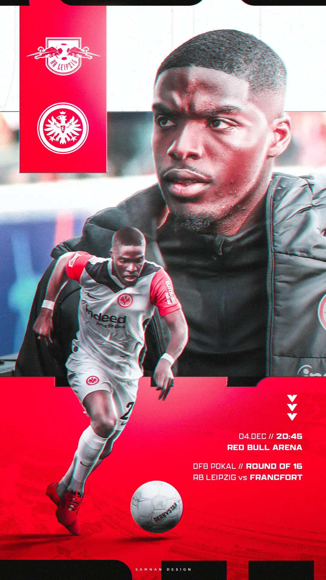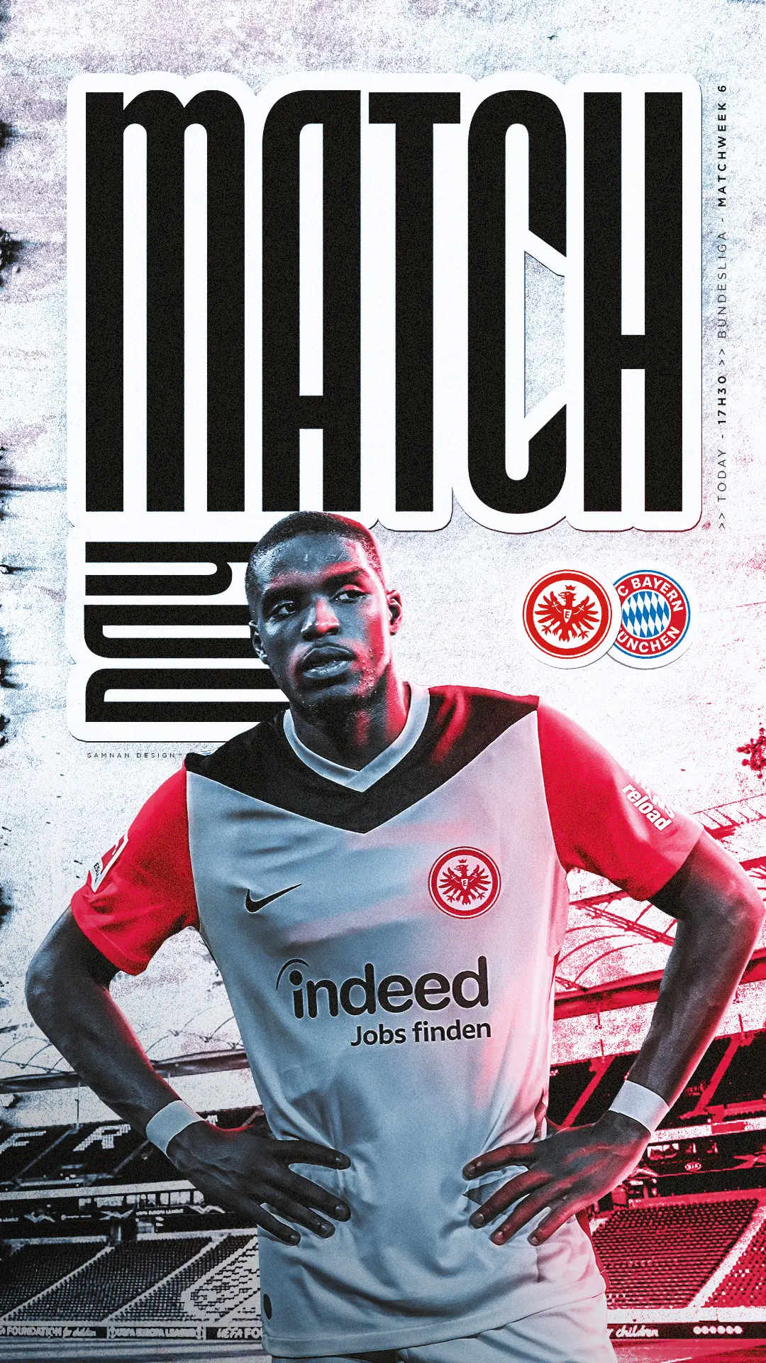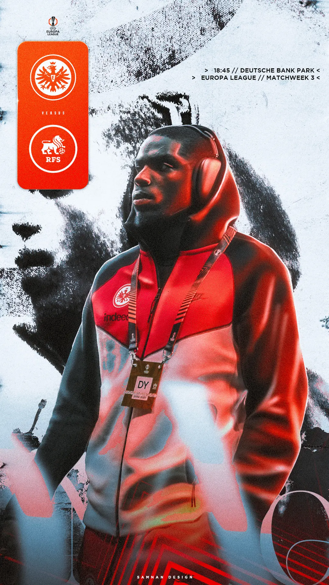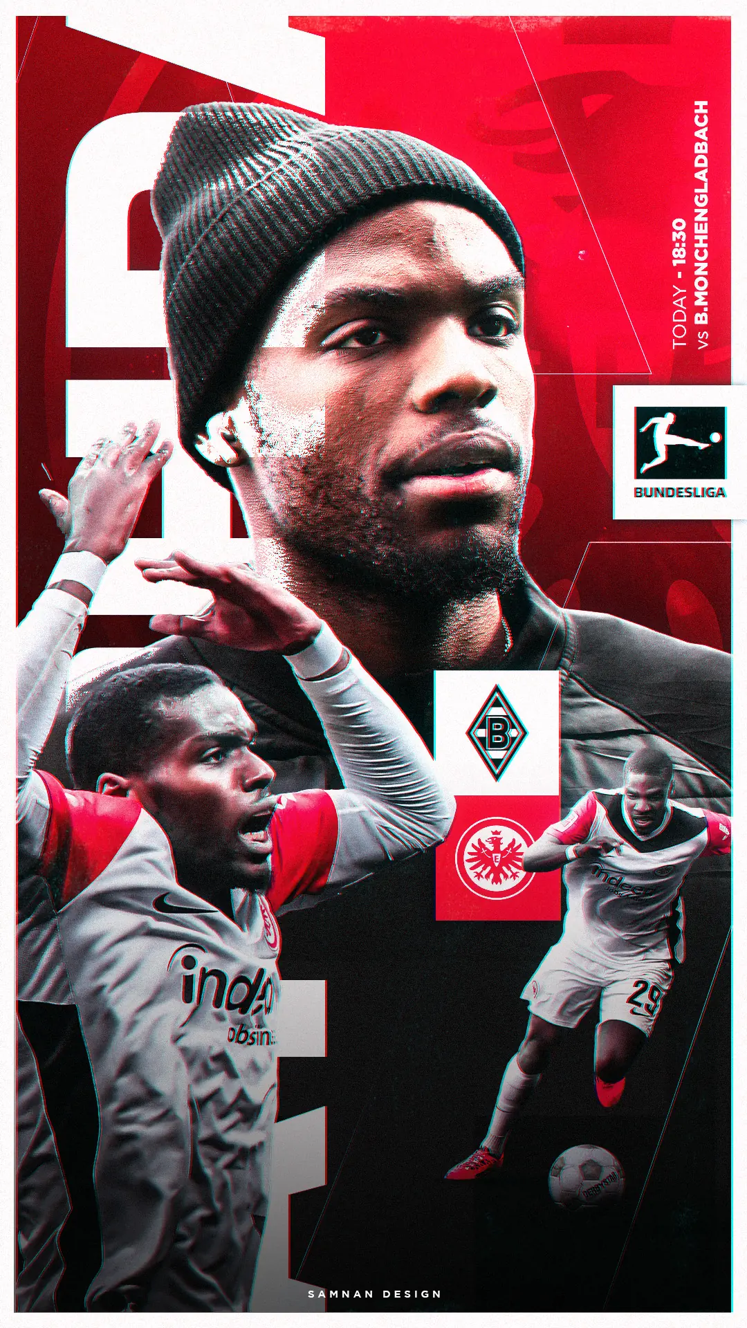 Niels Nkounkou est un joueur français qui évolue actuellement dans le club de l’Eintracht Francfort. L’Agence Double Contact m’a fait part de son envie et besoin d’avoir des visuels d’avant-match. Les visuels d’avant-match jouent un rôle clé dans la communication autour d’un match. Ils permettent d’informer les supporters sur les détails du match, de promouvoir la rencontre sur les réseaux sociaux et de mettre en valeur le joueur sur les réseaux sociaux. Ils permettent aussi de renforcer l’identité du joueur, créer de l’attente chez les fans, et donc génère des interactions et une proximité avec les fans.